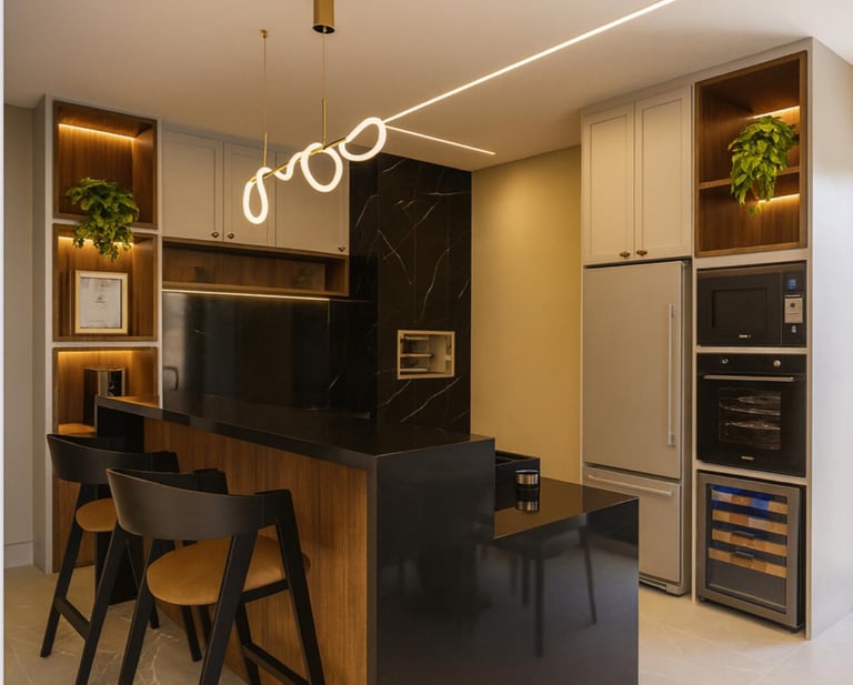 ✅Cozinha integrada com churrasqueira, perfeita para receber Piscina com aquecimento, cascata, iluminação em LED e cascata verde
